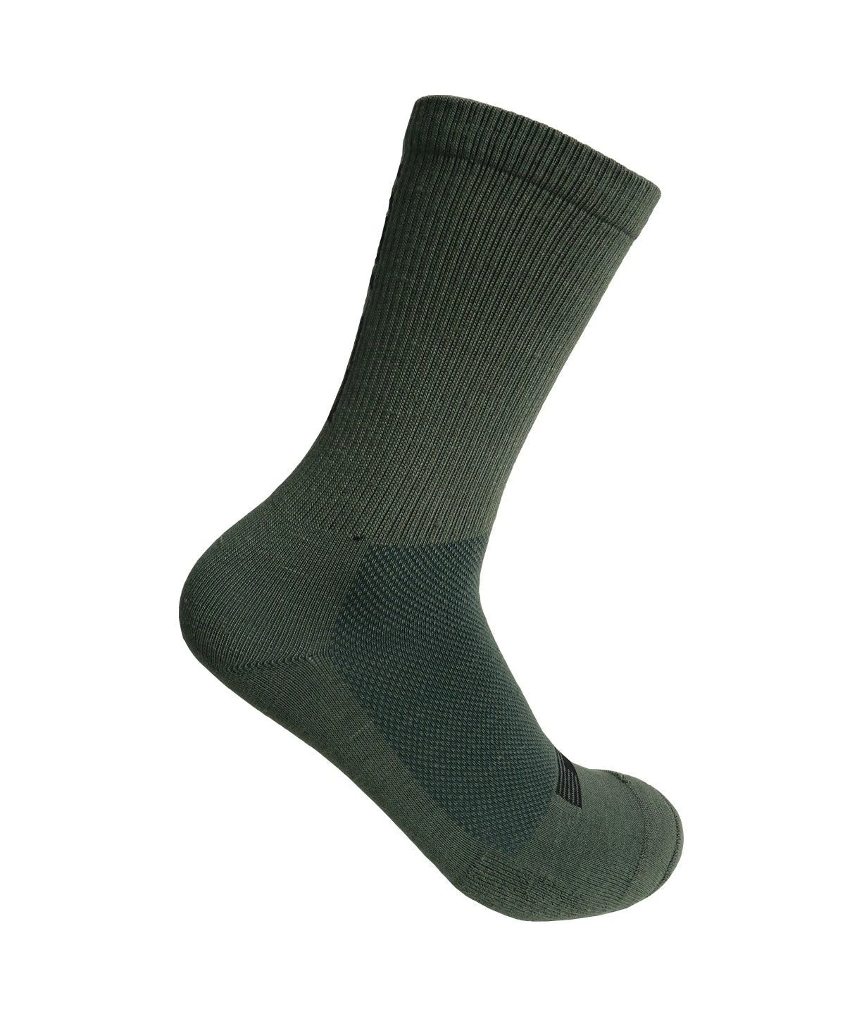 A high-performance all-condition trail riding sock with a no-feel toe seam, arch compression, and padding in the toe box, forefoot, and heel.