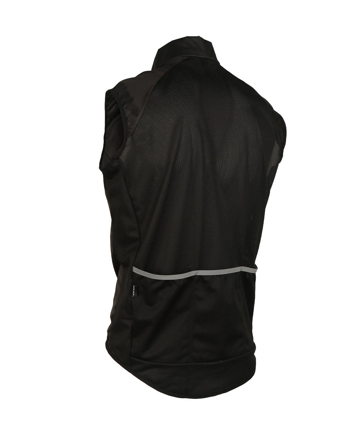 A relaxed, club fit vest with weather resistant front panels, mesh back, and three deep pockets that protects against damp chill and packs easily into a jersey pocket.