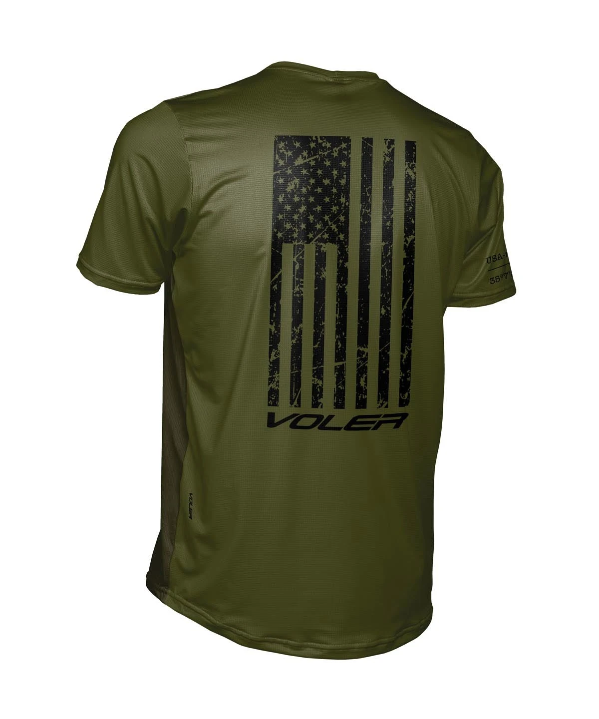 A quick drying, short sleeve tech tee with built-in stretch, a soft touch, and UPF 35 sun protection sourced and made in good conscience.