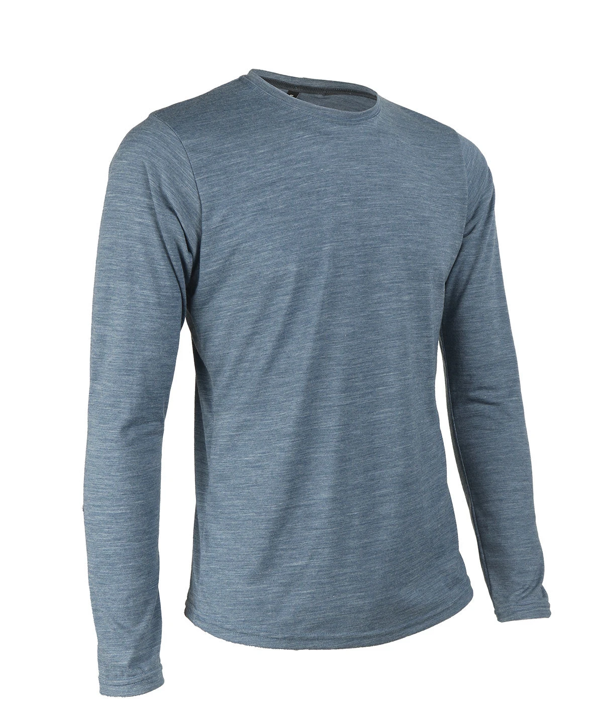 A summer-weight, long sleeve tee made from a 50/50 blend of RWS-certified merino wool and lightweight polyester for natural breathability, moisture-wicking, and odor resistance combined with durability and exceptional comfort.