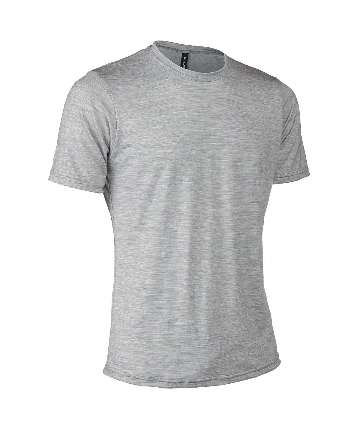 A summer-weight tee made from a 50/50 blend of RWS-certified merino wool and lightweight polyester for natural breathability, moisture-wicking, and odor resistance combined with durability and exceptional comfort.