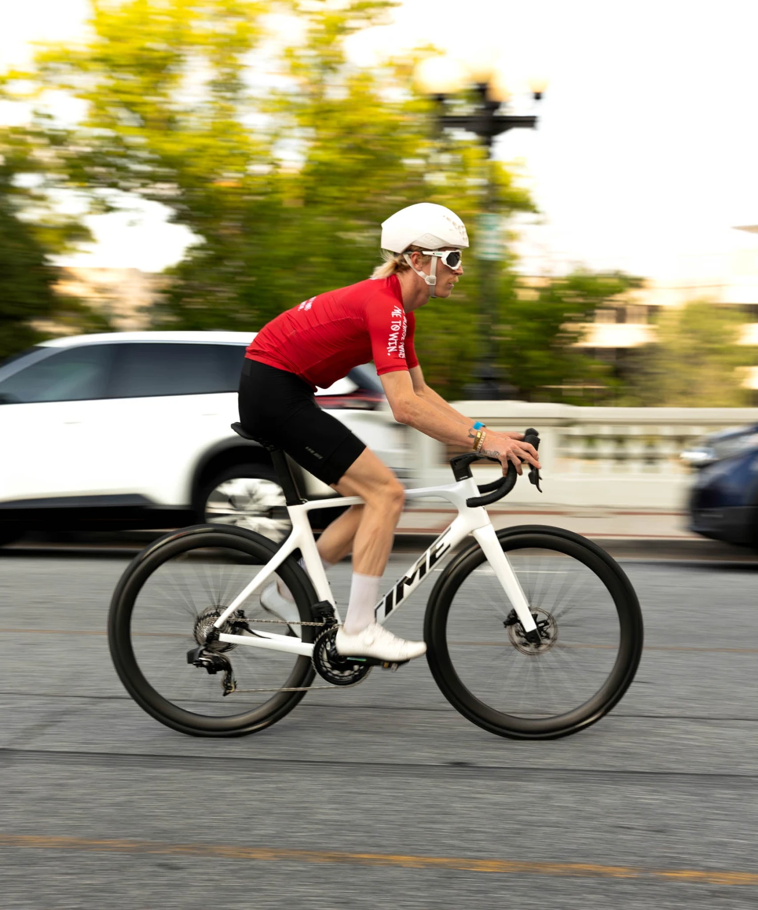 A professional-grade jersey with extended aero sleeves and three pockets, built entirely from a stretchy mesh fabric that wicks and fits like a second skin.