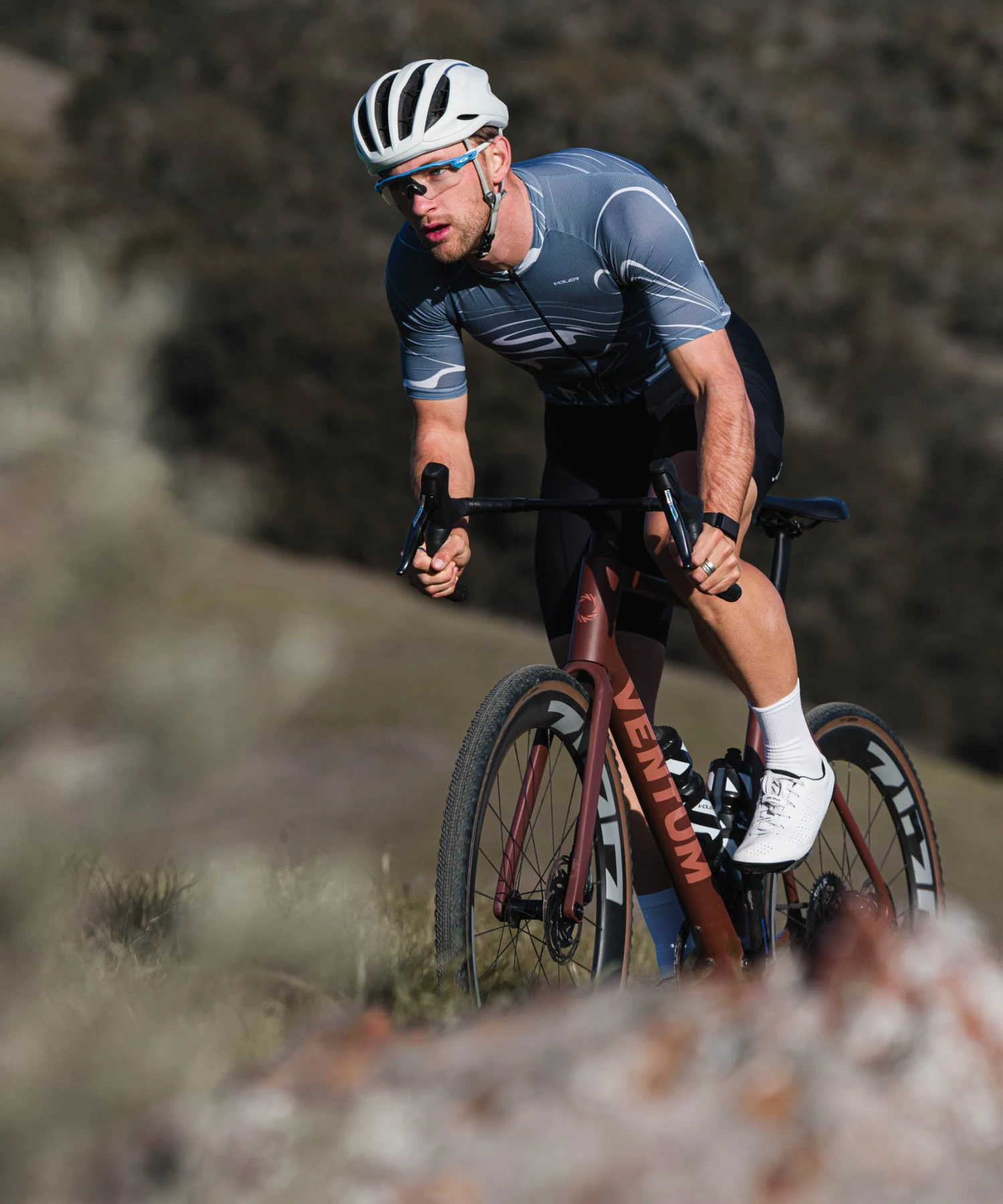 A professional-grade jersey with extended aero sleeves and three pockets, built entirely from a stretchy mesh fabric that wicks and fits like a second skin.