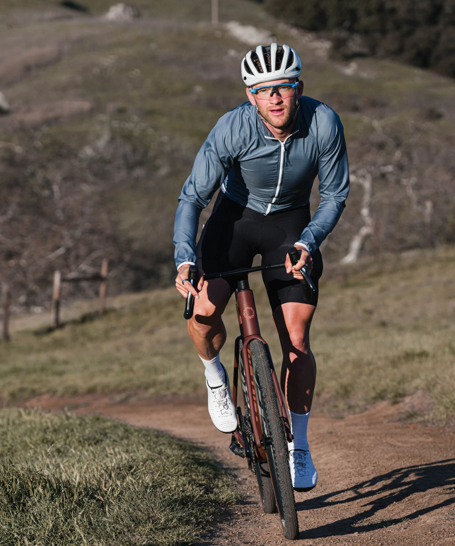 A wind and weather resistant jacket with a PFAS-free DWR finish including three deep pockets that protects against damp chill and packs easily into a jersey pocket.
