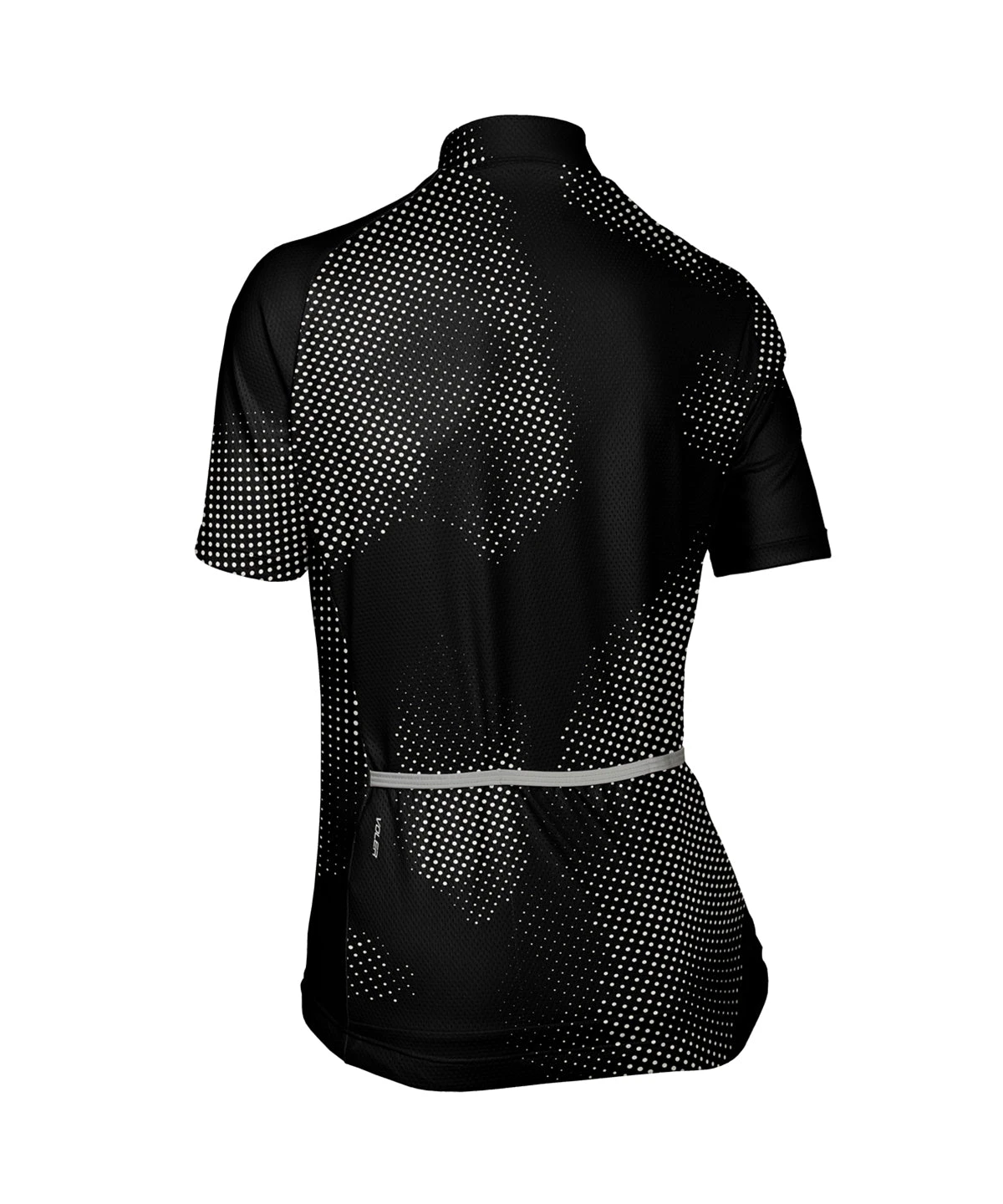 A three-pocketed cycling jersey made from breathable performance fabric with reflective accents for everyday riding and comfort.