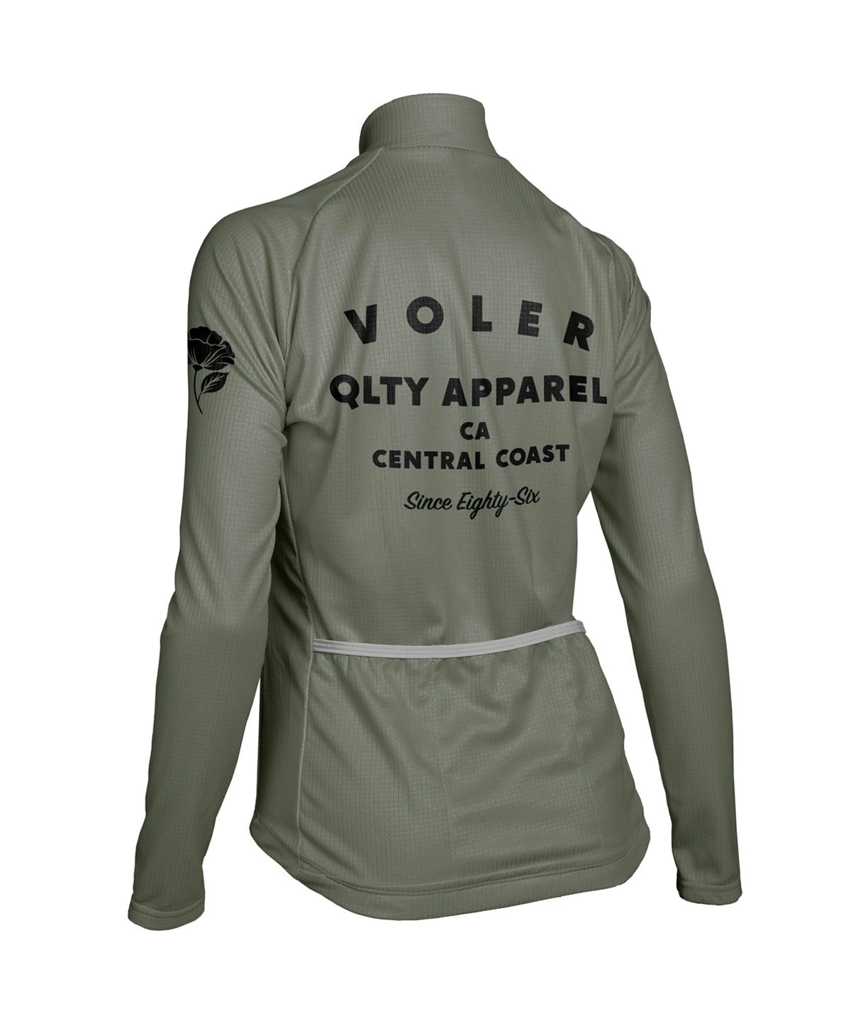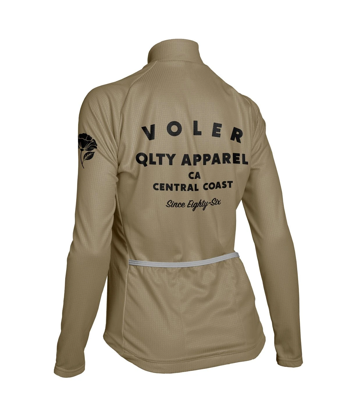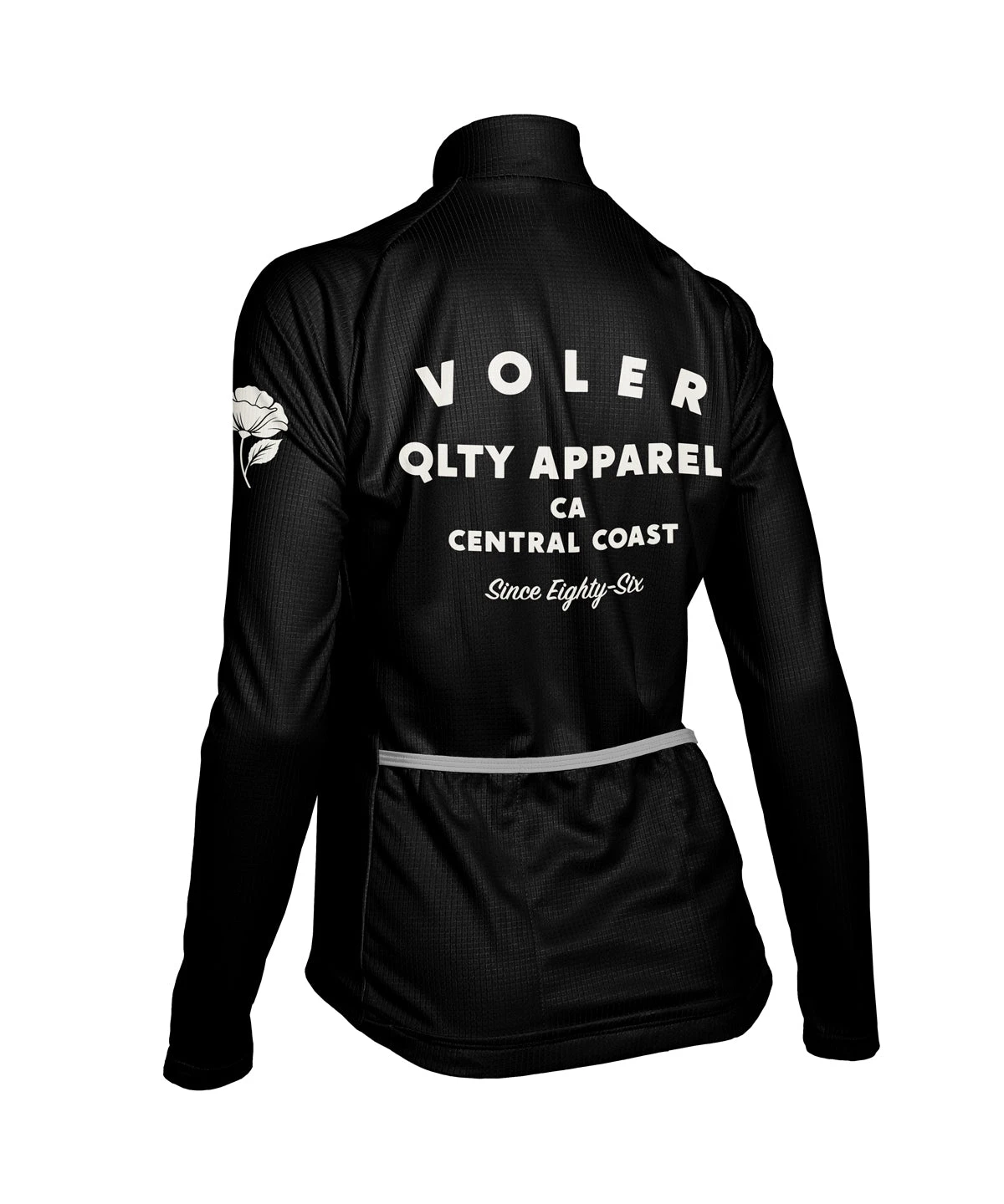 A thermal race cut long sleeve jersey with three pockets, made from breathable, fleece-backed fabric for temps from 40 to 60 degrees.