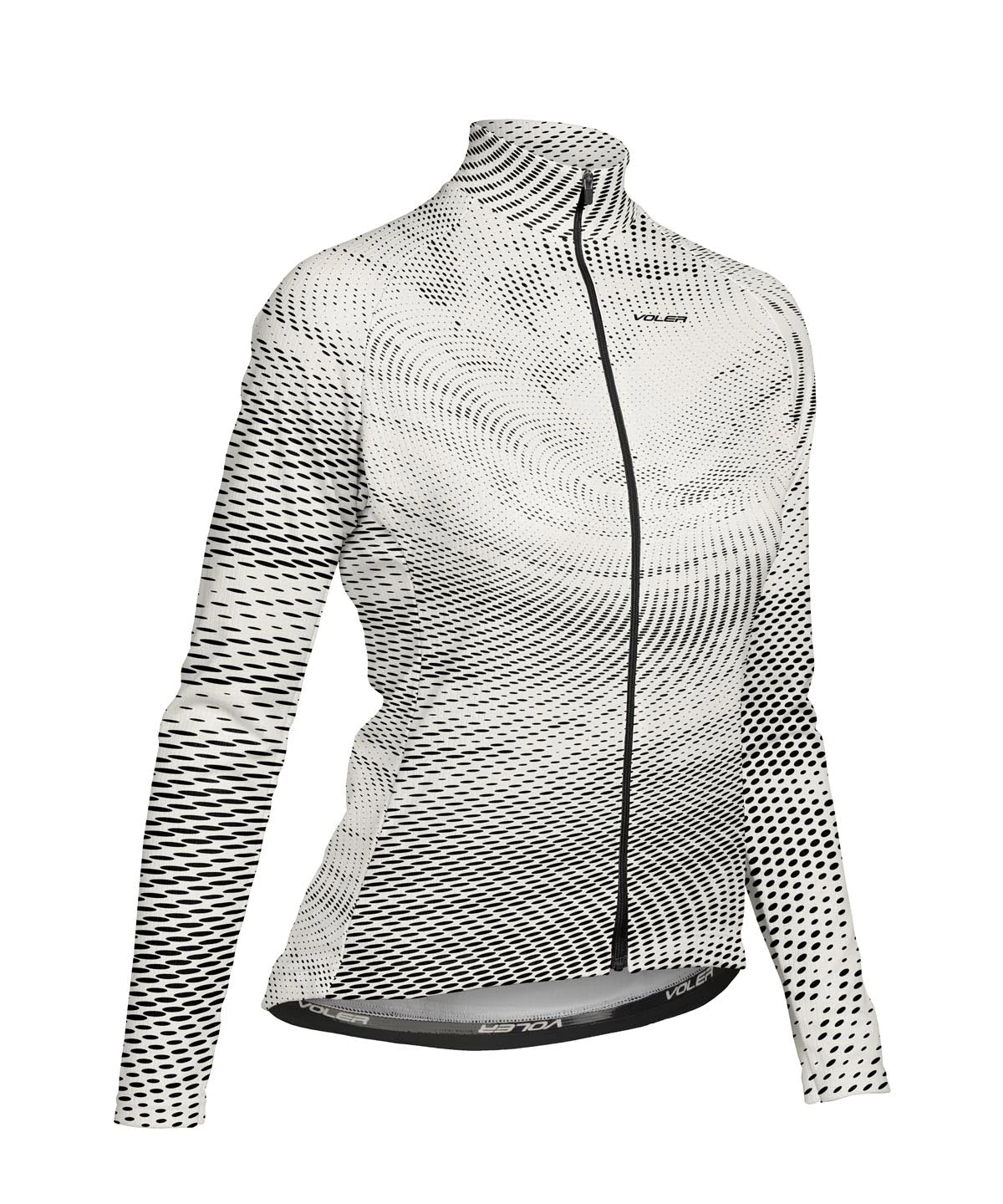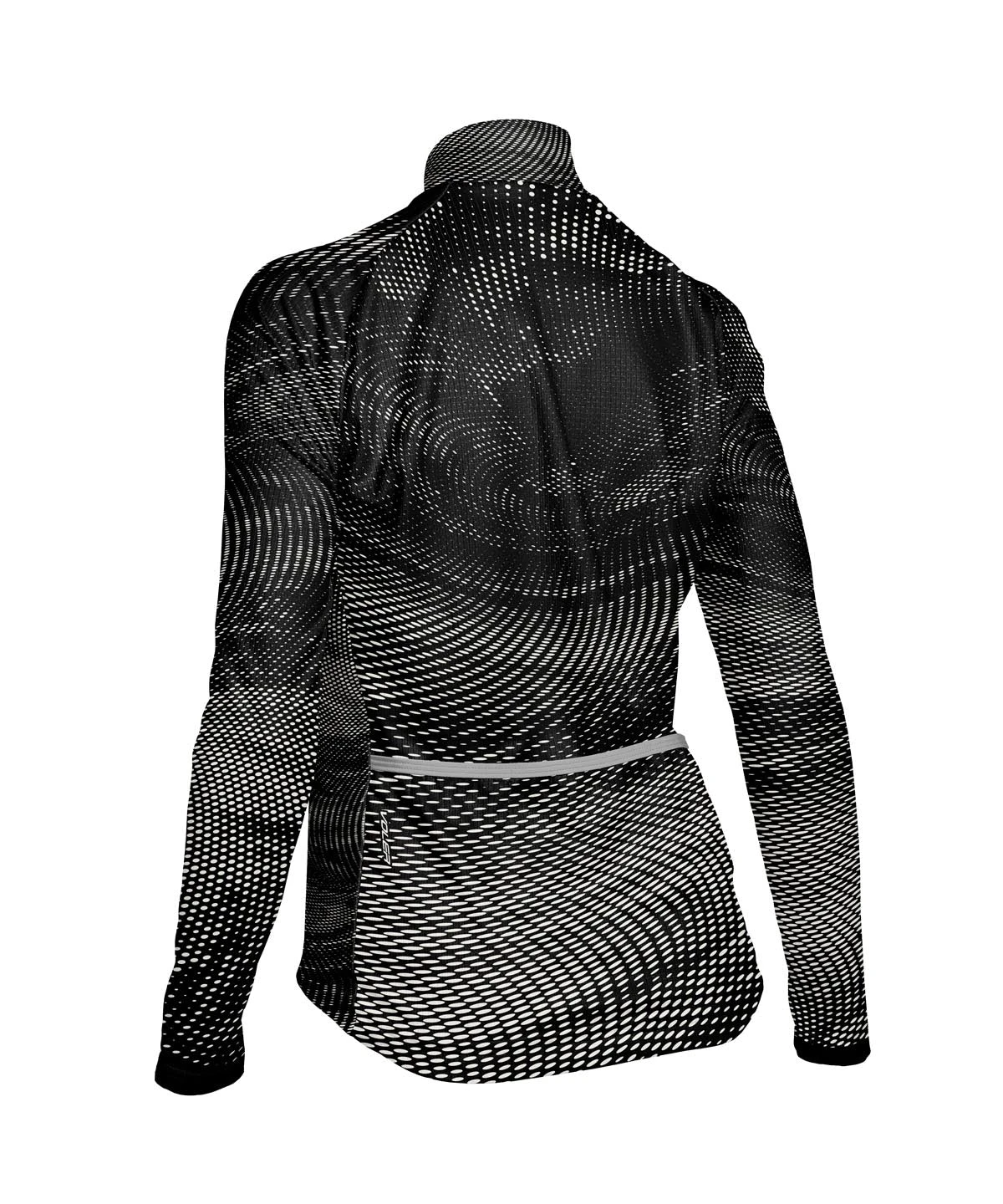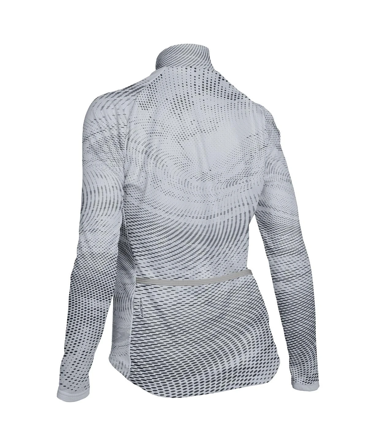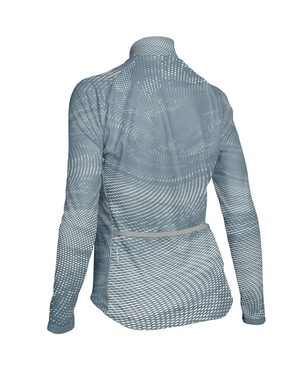 A thermal race cut long sleeve jersey with three pockets, made from breathable, fleece-backed fabric for temps from 40 to 60 degrees.