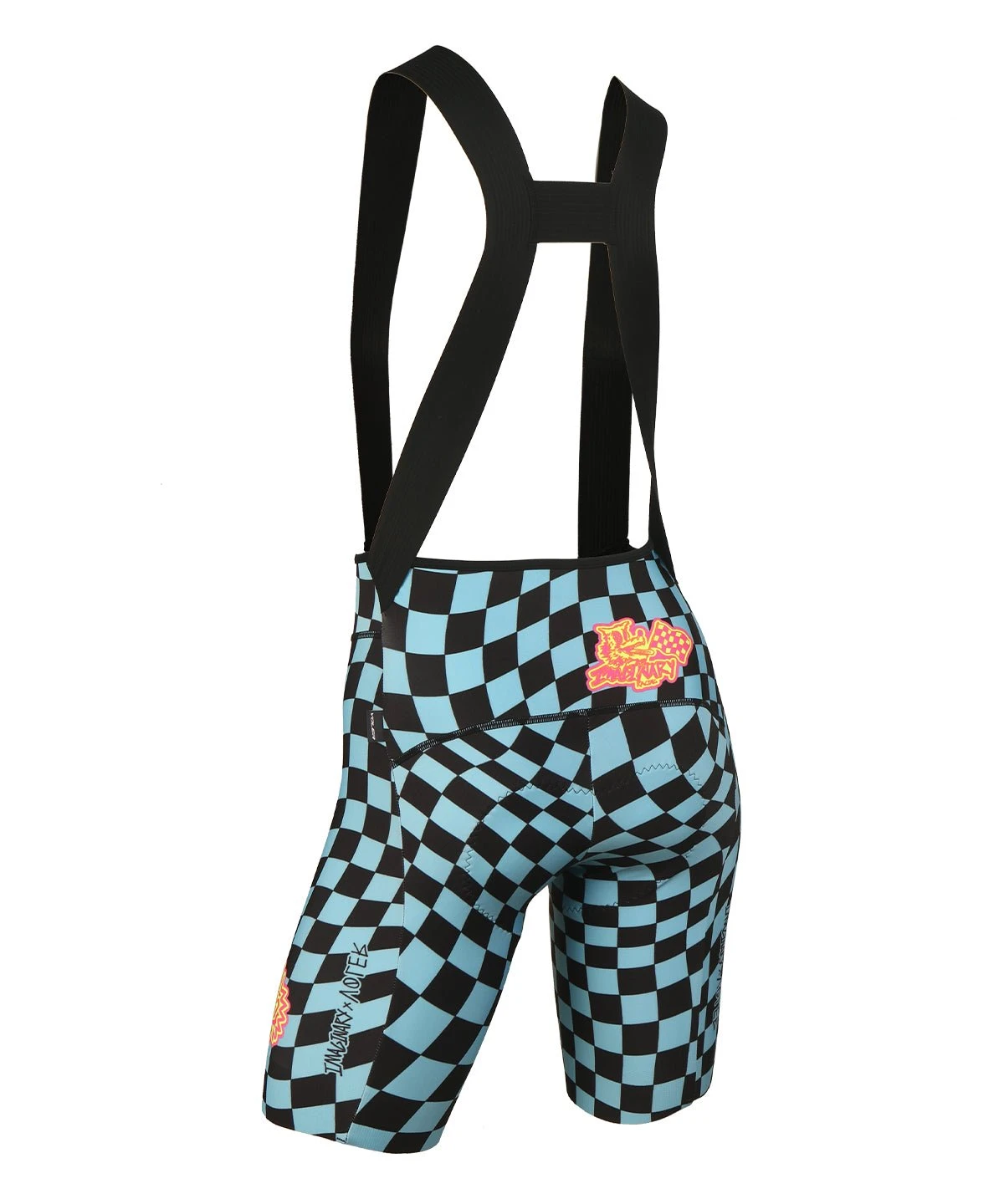 Professional-grade women’s bib short, with an integrated drop seat for easy nature breaks, built with an all-day chamois, mid-high compression fabrics and a supportive bib harness.