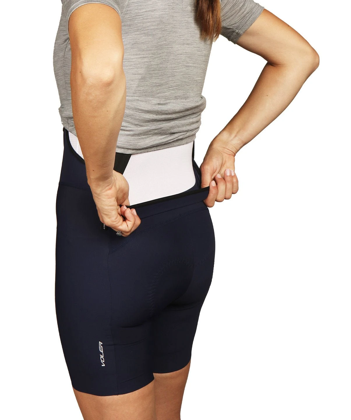 Professional-grade women’s bib short, with an integrated drop seat for easy nature breaks, built with an all-day chamois, mid-high compression fabrics and a supportive bib harness.