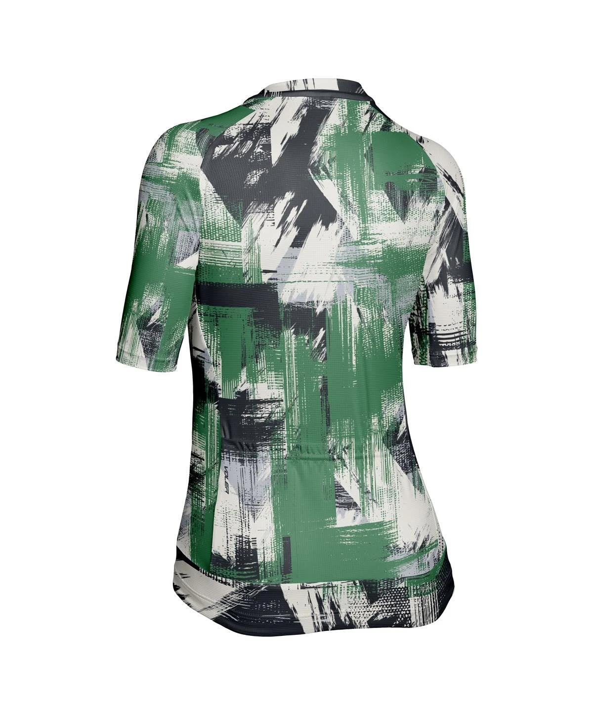 A professional-grade women’s jersey with full-length aero sleeves and three pockets, built entirely from a stretchy mesh fabric that wicks and fits like a second skin.